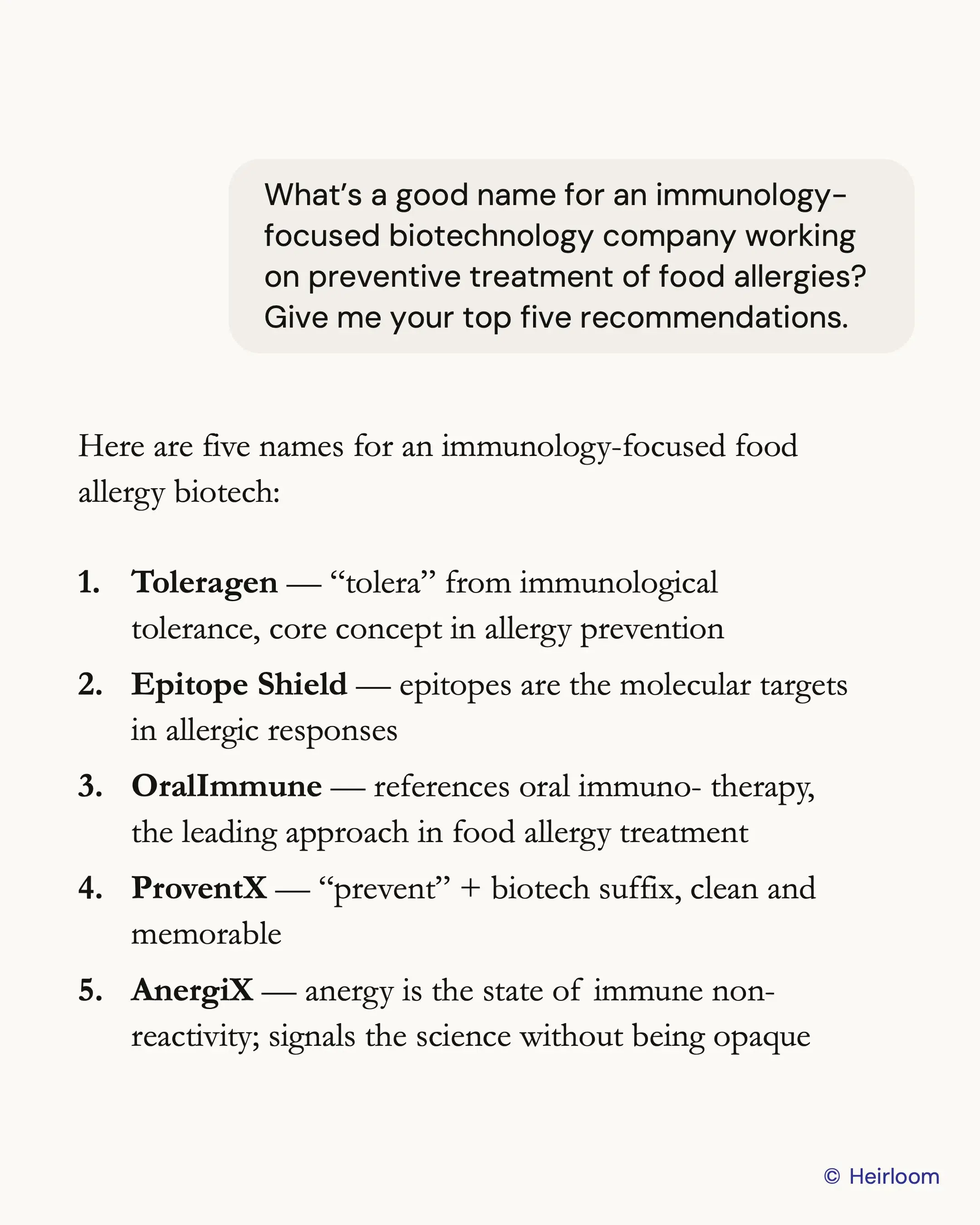 A valóság az, hogy bár az AI segíthet a névadás folyamatában, de közel sem csodaszer. Rob Meyerson, a Heirloom márkaügynökség alapítója megosztja tapasztalatait: az AI-eszközök nagyszerűen teljesítenek a kutatásban és stratégiai gondolkodásban. Segítenek feltérképezni a piacot, konkurenciát elemezni, és témákat brainstormelni. A névötletek generálásakor viszont már középszerű a teljesítményük - nyers ereje vitathatatlan, de az ízlése kevésbé meggyőző. Amikor pedig védjegyvizsgálatról vagy nyelvi ellenőrzésről van szó, egyszerűen nem megbízható. Ahogy Meyerson fogalmaz: "a generatív AI kitalál dolgokat", és ha egy embernek úgyis mindent dupla ellenőriznie kell, nem igazán spórol időt.