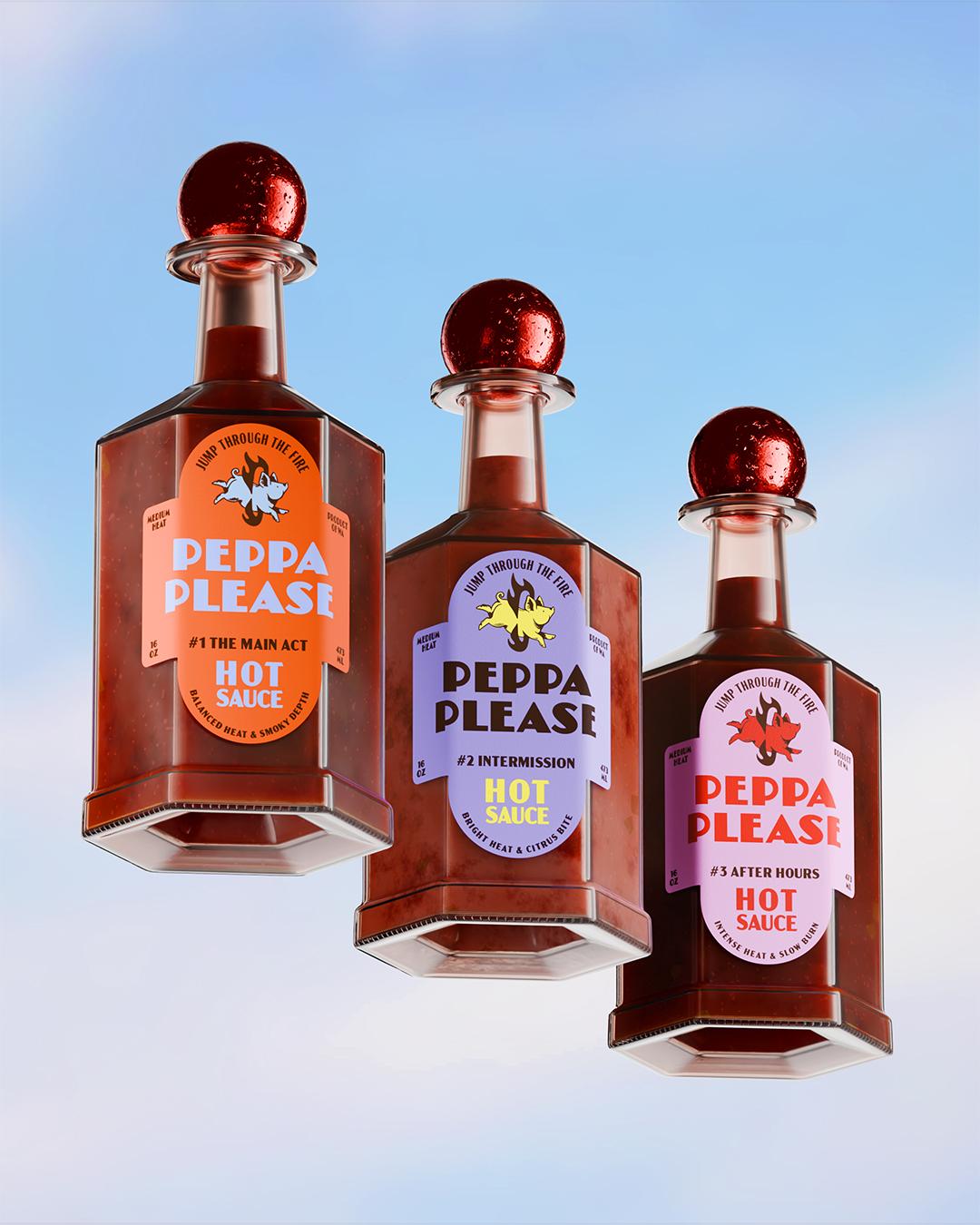 A Peppa Please projekt pontosan ezt tette: a főszereplő Peppa egy öntelt, kissé káoszba hajló malac lett, aki minden önkritika nélkül hiszi, hogy készen áll a nagy mutatványra. Ez a karakter formálta az egész márka energiáját és vizuális narratíváját. A tervezők a cirkuszt választották vezérfonalnak – minden elem ezt a világot építette fel, a hierarchiától a színpalettáig. A hatszögletes üveg alakja a cirkuszi sátor geometriáját idézi, míg a merész színek durvább textúrákkal keverednek. A címketerv szándékosan feszegeti az egyensúlyt: erős tipográfia találkozik kézzel rajzolt jelekkel és nyomdai "hibákkal".