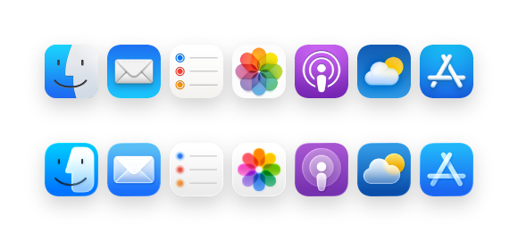 A tipográfiában a betűtípusok, amik nagyban szépek, kicsiben gyakran túlzagzagok és olvashatatlanok lesznek. Ugyanez történik a Liquid Glass anyaggal: nagyobb felületeken gyönyörű, de apró ikonelemeken elmosódik a kontraszt. Rafailyk konkrét példákat hoz: az Időjárás, App Store és Fájlok ikonok jól működnek, míg a Fotók, Emlékeztetők és Mail ikonok homályosak. A megoldás? Változtatható ikonok kellnének – ahogy a változtatható betűtípusok alkalmazkodnak a mérethez, úgy az ikonok is egyszerűsödhetnének kisebb méretnél.